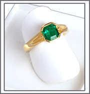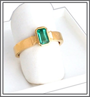 Eine besondere Smaragd-Schönheit. Sehr klares, sehr sauberes, sehr leuchtendes , intensives Grasgrün in einem exzellenten Smaragdschliff - schöner als ein Foto es zeigen kann. Bitte Bilder anklicken Ron-A 1044: Smaragd 1,38 ct, 11 x 6,3 mm mit Fassung - 7,9 Gramm Gelbgold 750 - Ringgröße 18 - €2.260,- |