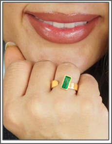 Dame: ...die Intensität des Smaragds ist noch viel schöner als auf den Abbildungen, farblich passt er ausgezeichnet zu meinem Ring und die Fassung ist wunderschön gearbeitet. Inzwischen habe ich schon die ersten Komplimente (von Unbekannten!) für diesen Schmuck erhalten. Ich werde weiterhin auf Ihren Internetseiten schwelgen und träumen .... |