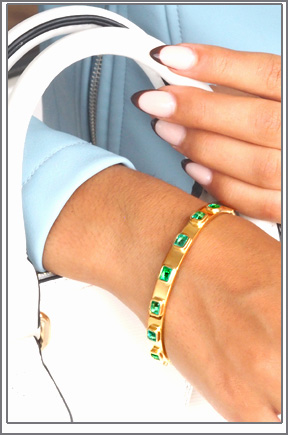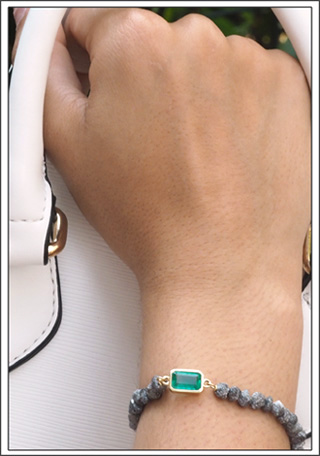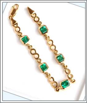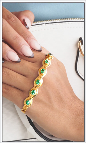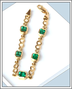 Smaragden in einem Armband mit ihren leicht unterschiedlichen